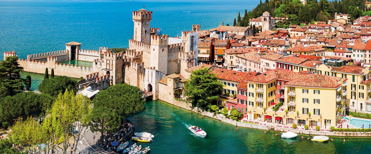 Sirmione ist vor allem für ihre historischen Schätze und die malerische Altstadt auf einer Halbinsel im Gardasee berühmt. Das Wahrzeichen der Stadt ist die Scaligerburg, eine mittelalterliche Festung am Eingang zur Altstadt. Sie können die Burg besichtigen und von ihren Türmen aus einen spektakulären Blick auf den See genießen.